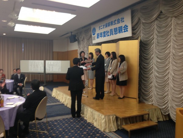 4月13日(土)、武生商工会議所にて、弊社 第45期 経営方針発表会を開催いたしました。各種方針について、全社員で共有致しました。発表会後は、社員懇親会を行い、平成24年度活動における社員表彰を行いました。